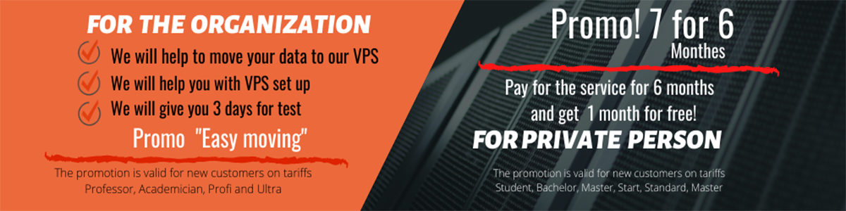 The promotion is valid for the tariffs Student, Bachelor, Master of the OpenVZ line and Start, Standard, Master of the KVM line for new customers.